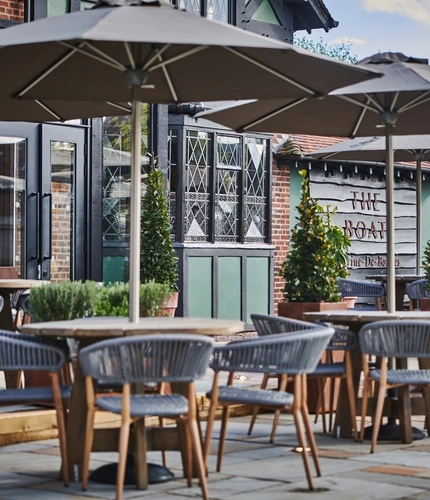 From pints in the sunshine to a hot chocolate next to the log burner, our pergola offers outdoor dining all year round.