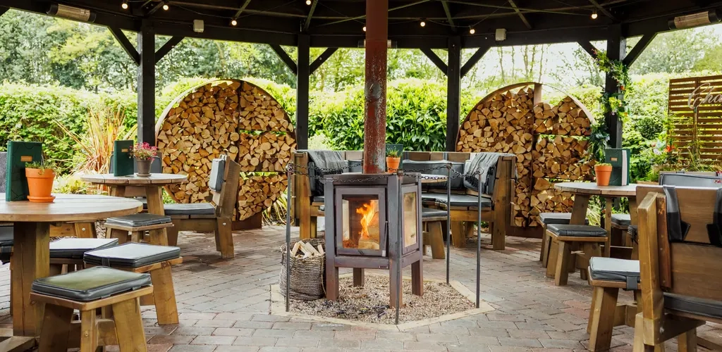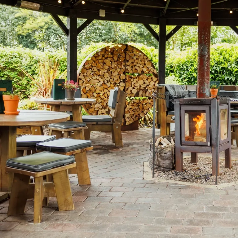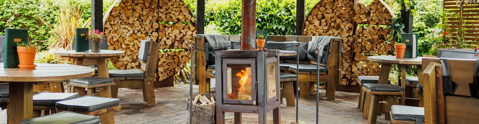 Step into our inviting beer garden, where outdoor comfort meets seasonal delight. Designed to be enjoyed all year round thanks to its wooden pergolas covered in twinkling fairy lights, cosy firepits promising warmth and relaxation even on the chilliest evenings, and spacious open terraces. The perfect spot to savour the seasons.